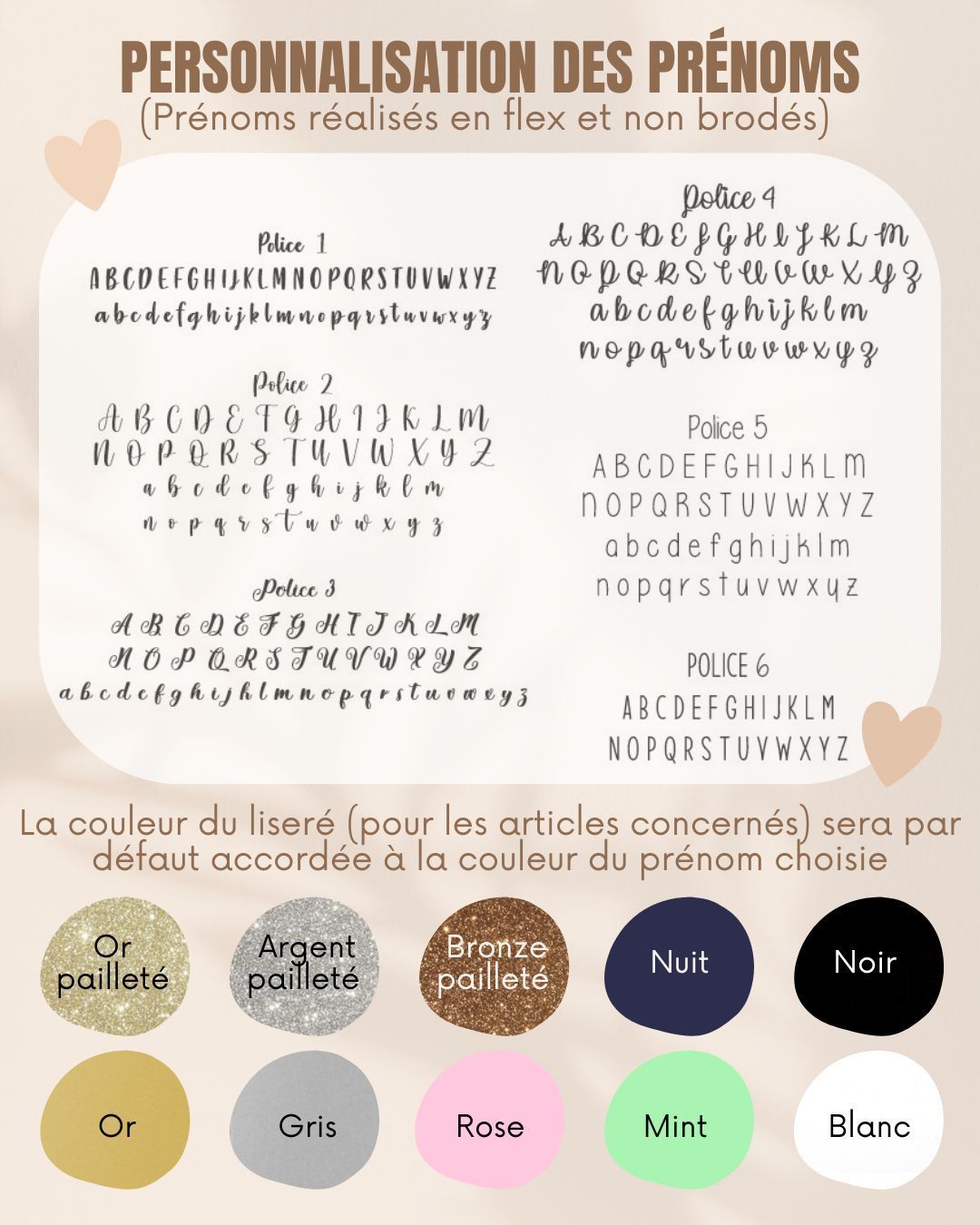 La couleur et la police choisies seront à préciser dans l’encadré prévu à cet effet